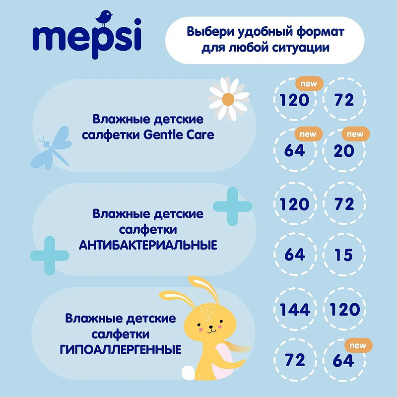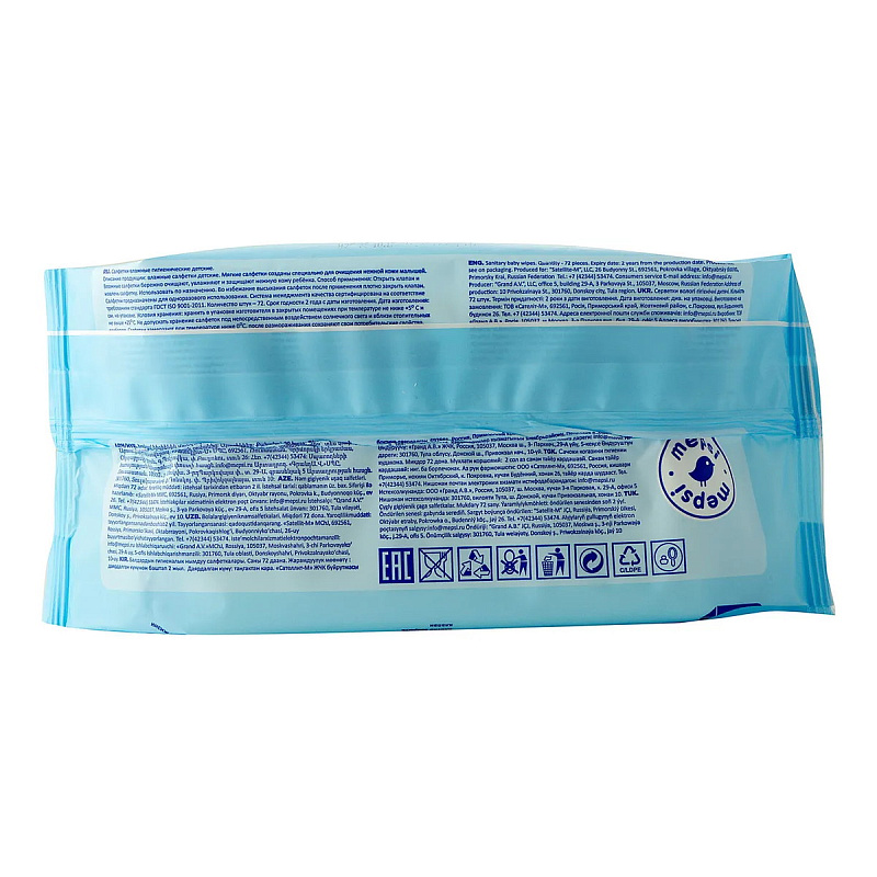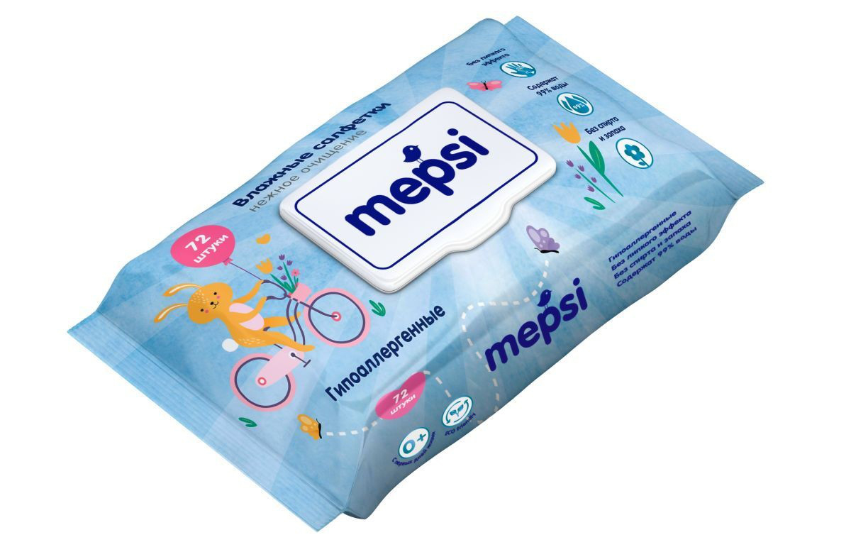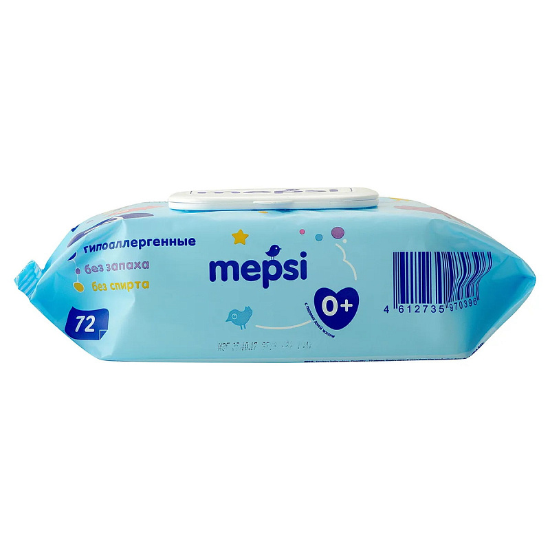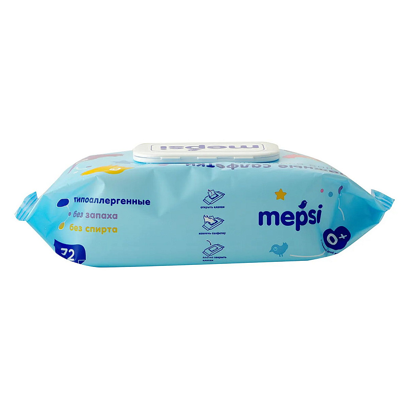 Влажные салфетки Mepsi гипоаллергенные детские, 72 шт