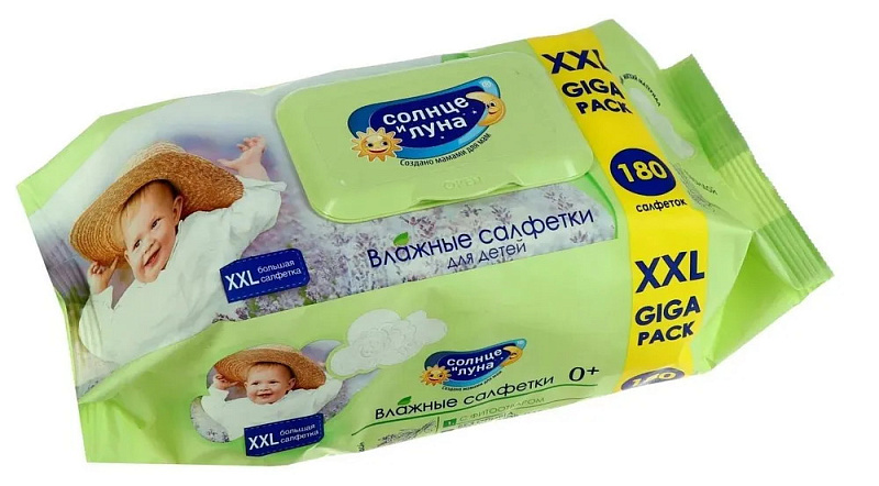 Влажные салфетки Солнце и луна детские, с отваром лаванды, big-pack с крышкой, 180 шт, 0+