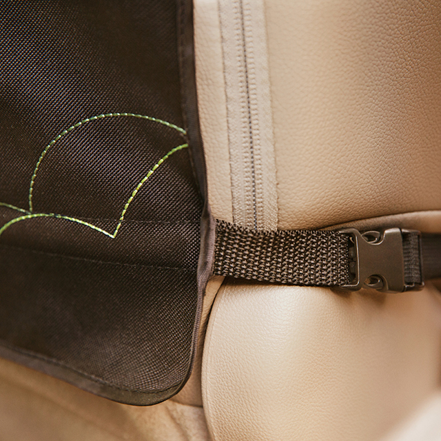 регулируемые пряжки-ремешки сверху и снизу надежно фиксируют коврик на спинке сиденья и подгоняются пот любую его форму;