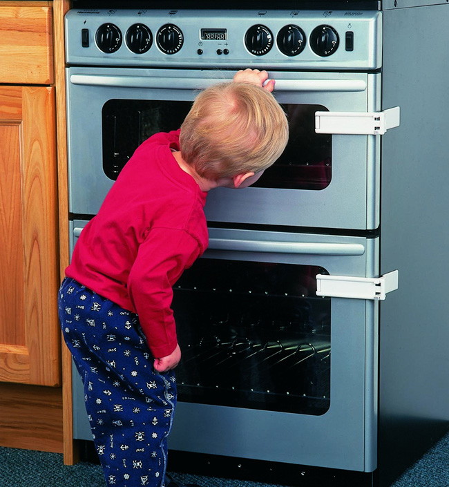 Во избежание серьезных ожогов или травм детей используйте жаропрочный замок для духовок и микроволновых печей.