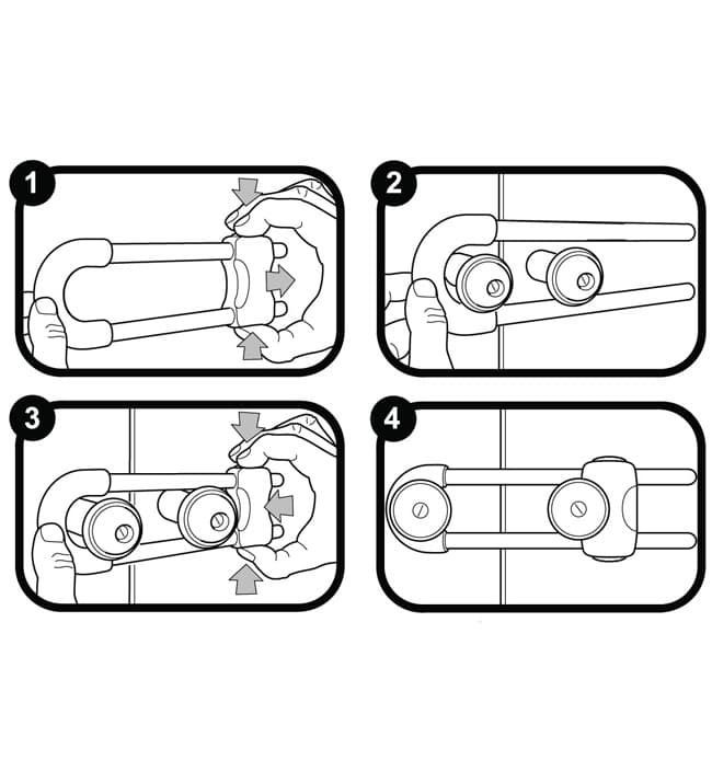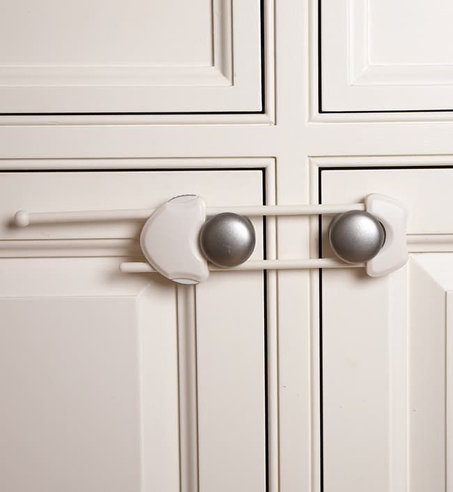 Замок для створчатых дверей с усовершенствованным дизайном из высокопрочного пластика. Предотвратит проникновение детей внутрь шкафа.
