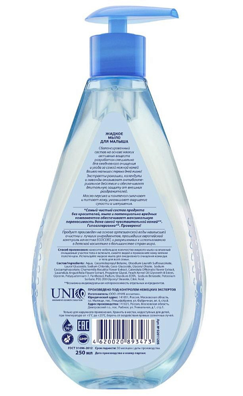 Жидкое мыло AQA baby для малыша 250 мл 02011205