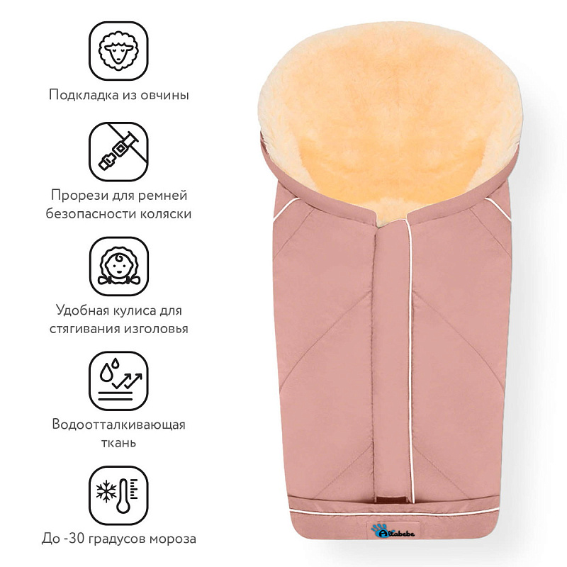 Altabebe Lambskin-Car Seat Bag MT2003-LP - Зимний конверт с уникальной теплоизоляцией согреет малыша даже в самые лютые зимы. Его внешняя часть выполнена из ветронепродуваемого материала, который обладает водоотталкивающим свойством. Внутренняя часть – 100% натуральная овчина. Утеплитель – 100% полиэстер. Задняя часть изделия имеет противоскользящую вставку и слоты для страховочных ремней, обеспечивающих надежное крепление детского зимнего конверта прогулочному сиденью коляски или автокреслу.