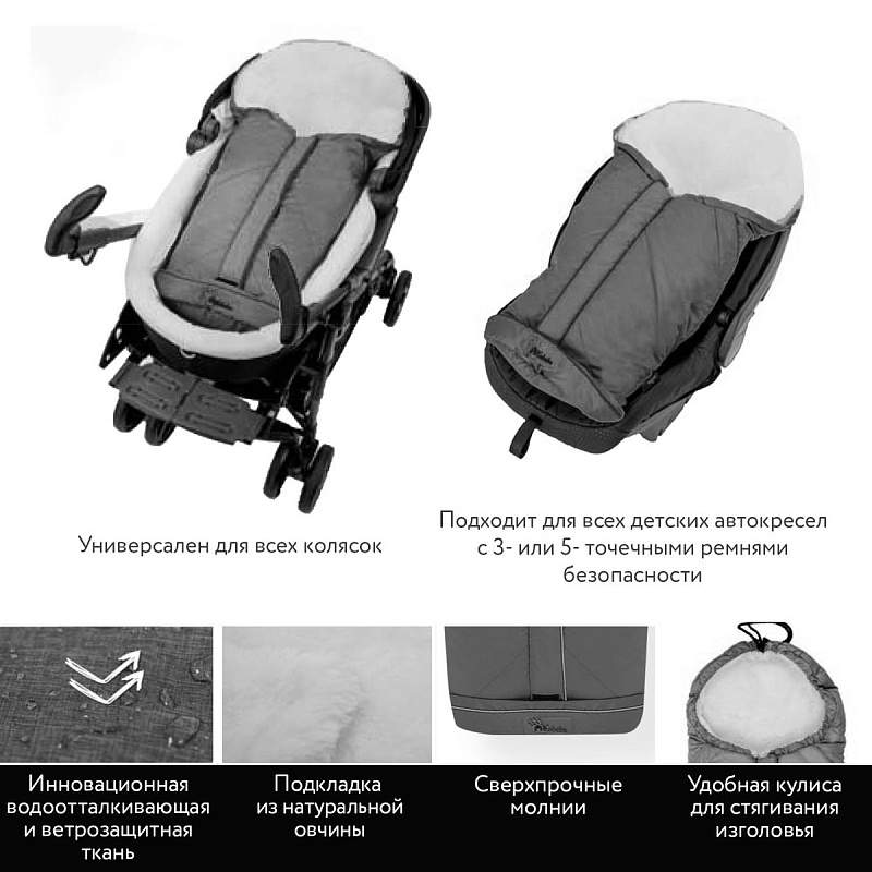Высокотехнологичные и теплые конверты из 100% натуральной овчины от производителя №1 в Германии. Без спецефического запаха овчины, легкий (700 гр),светоотражающие вставки, подходит для всех колясок. Стирка при температуре 30С.