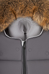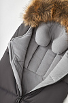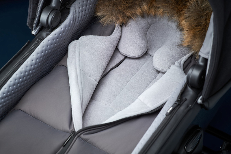 Доступ к младенцу очень удобный. Расстегните центральную молнию и откиньте боковины. Они автоматически примагнитятся и останутся в раскрытом положении, не мешая вам поправить шапочку или покормить кроху. Мягкая флисовая подушечка поддерживает голову малыша. При необходимости её легко снять. Мех также легко снимается, крепится к капюшону на кнопках.