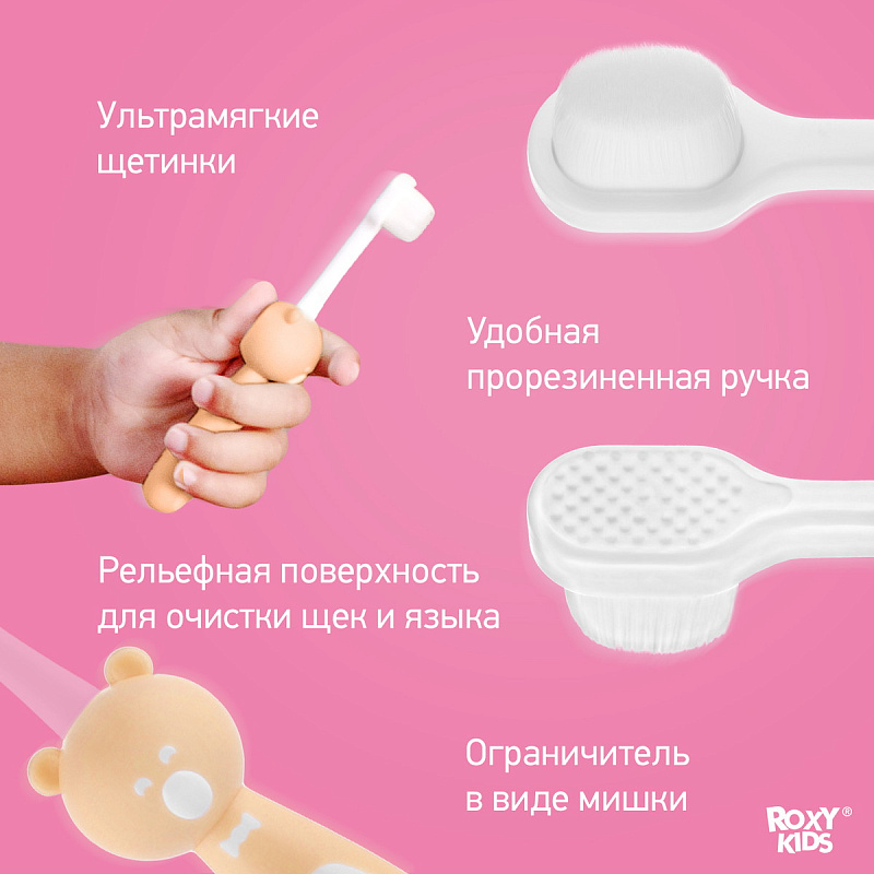 Зубная щетка для детей Roxy-Kids Мишка ультрамягкая 2 шт RTB-010-PO Роз+ОранжНет оценокХарактеристики