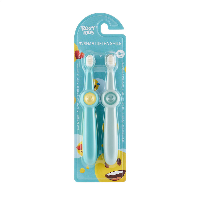 Зубная щетка для детей Roxy-Kids Смайлик ультрамягкая 2 шт RTB-013-BG Бирюзовый+ЗеленыйНет оценокХарактеристики