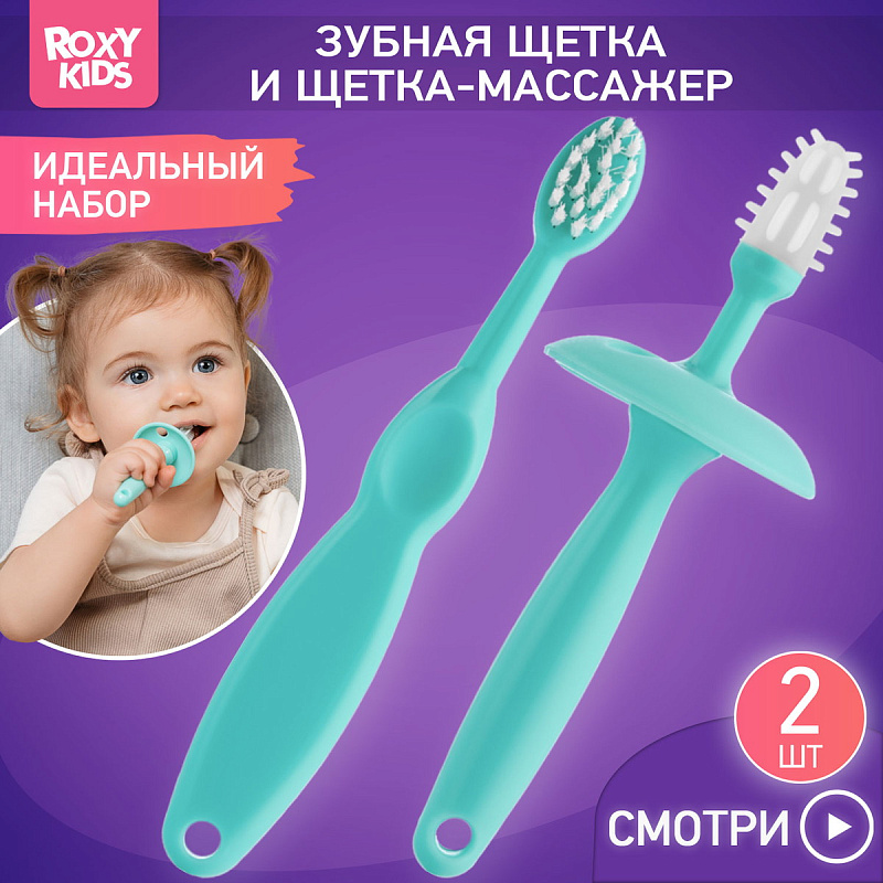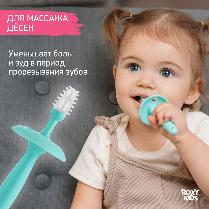 Зубная щетка и щетка-массажер Roxy-Kids для малышей RTM-002 бирюзовый
