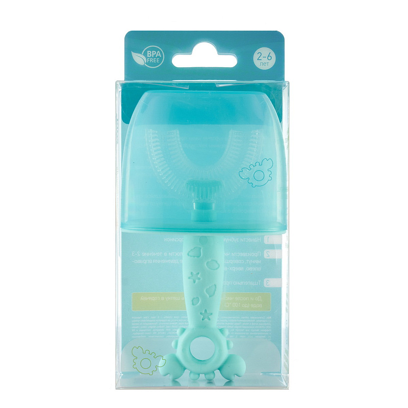 Зубная щетка-массажер для детей Roxy-Kids Крабик с футляром RTM-005-B голубойНет оценокХарактеристики